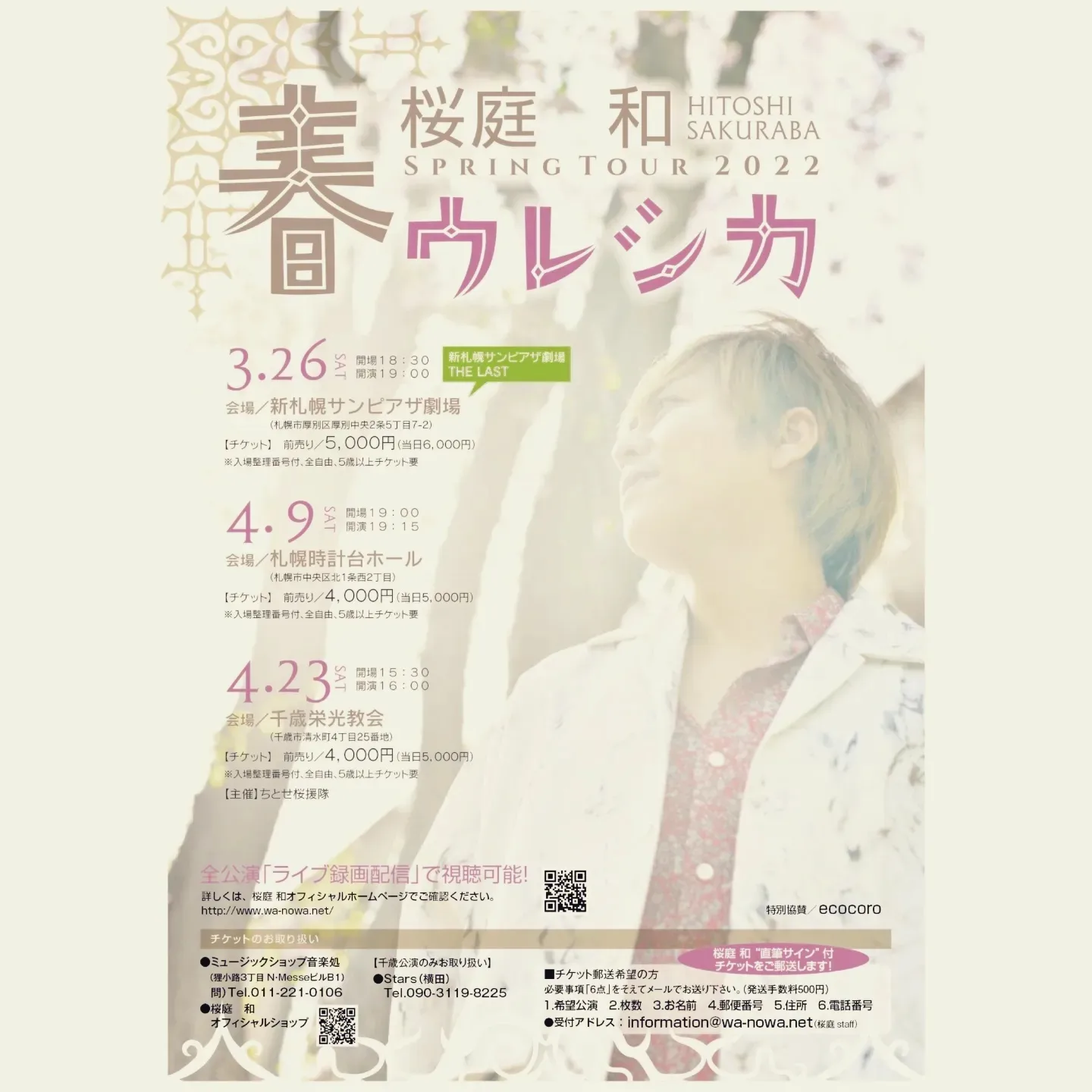 23日(土)桜庭和さんライブ『春ウレシカ』in千歳栄光教会