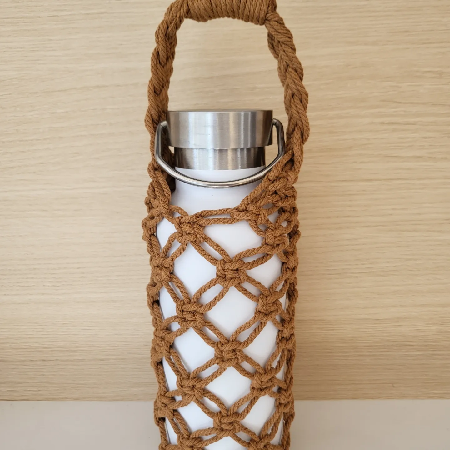 ステンレスボトルをマクラメボトルカバーに入れて