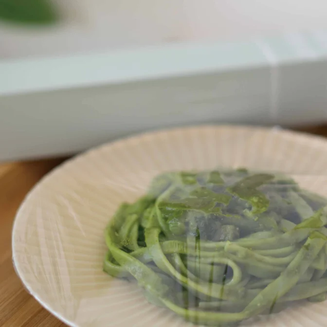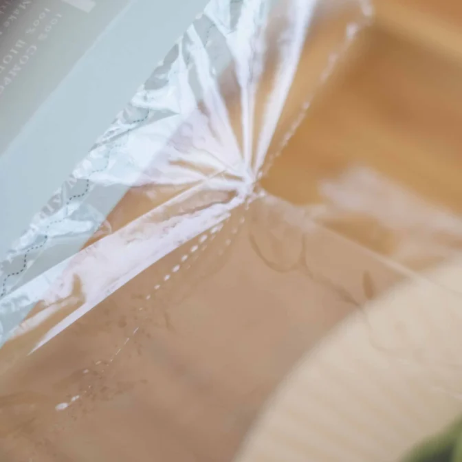 コンポストに入れて180日で土に還る、生分解性100%のラップです。