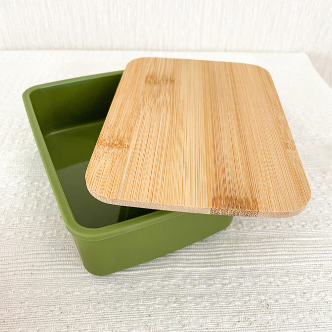フタは竹素材、容器にも30%の竹繊維が配合されているバンブーフードBOXです。