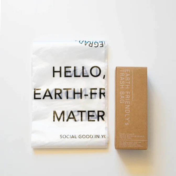 約45日間(※)で土に還る、地球に優しい素材のゴミ袋です。